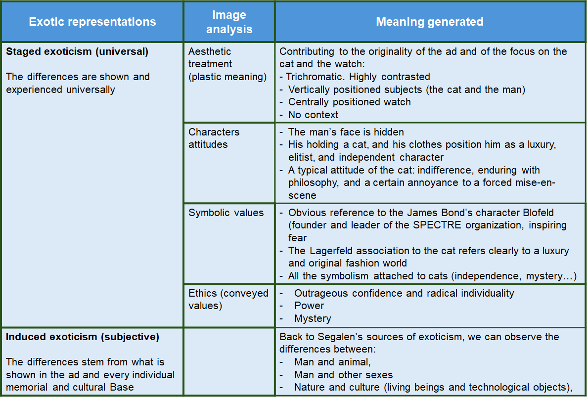 | The cat, facing the camera, is the main protagonist, together with the centrally positioned red watch. The bearded man's face is elusive. Back to Segalen's sources of exoticism, we can observe the differences between: