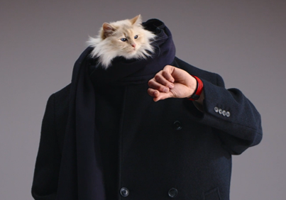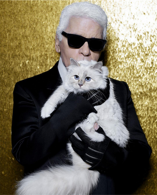The cat is the main protagonist (Together with the watch) | ![]() Karl Lagerfeld and his cat Choupette |
